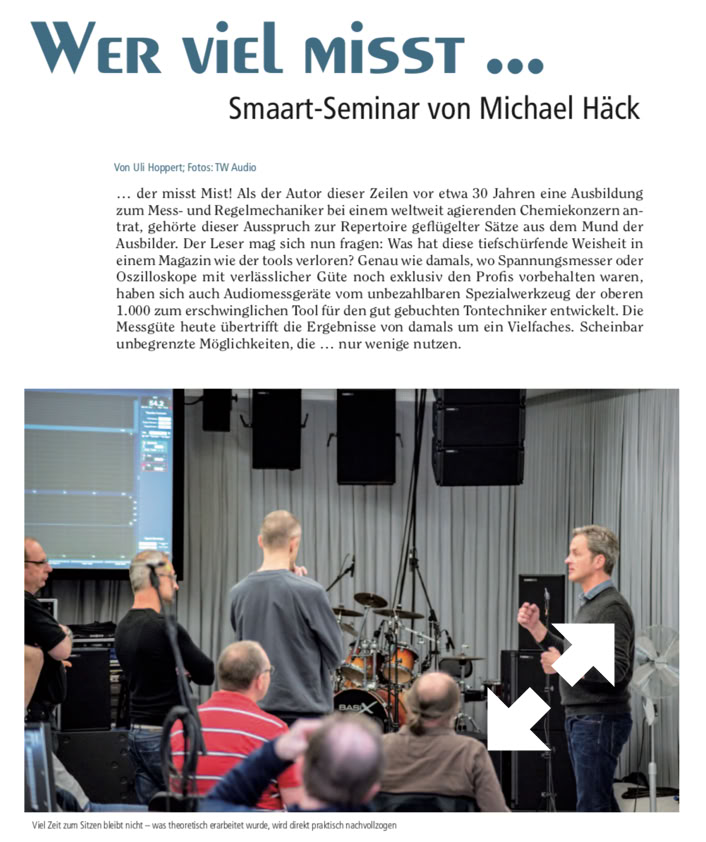 Seitdem habe ich über 2.500 Seminarteilnehmern in Deutschland/Österreich und auch bei internationalen Seminaren die Software Smaart erklären und die Messtechnik näher bringen können.
